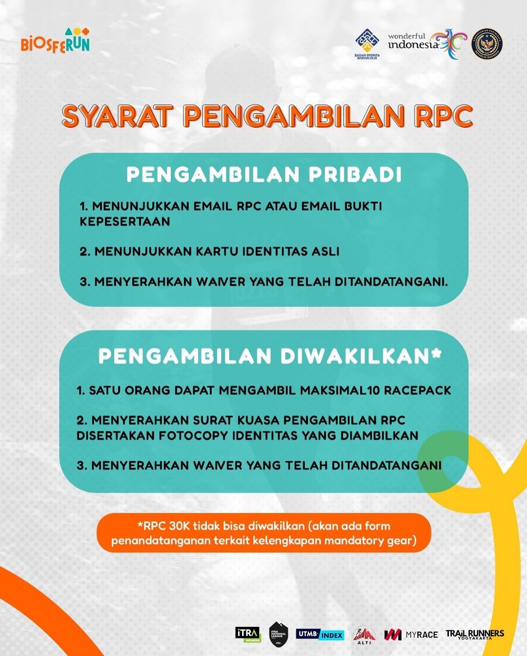 Jangan lupa juga untuk membawa syarat-syarat pengambilan RPC nya yang sudah ditentukan! Karena race pack kerenmu sudah siap menjadi simbol semangat untuk berlari bersama ratusan pelari lainnya! 🌏💨
