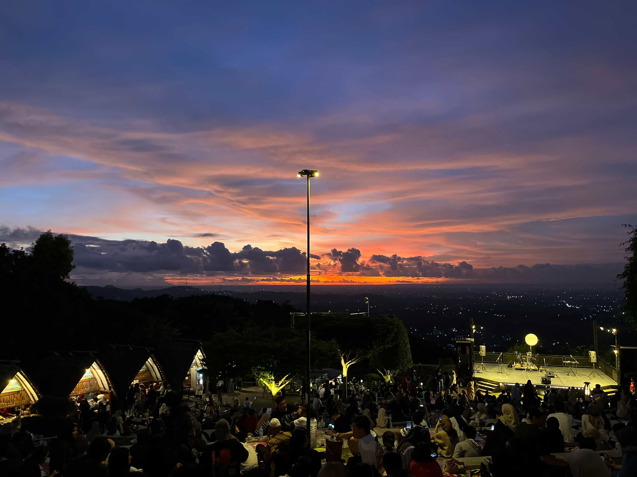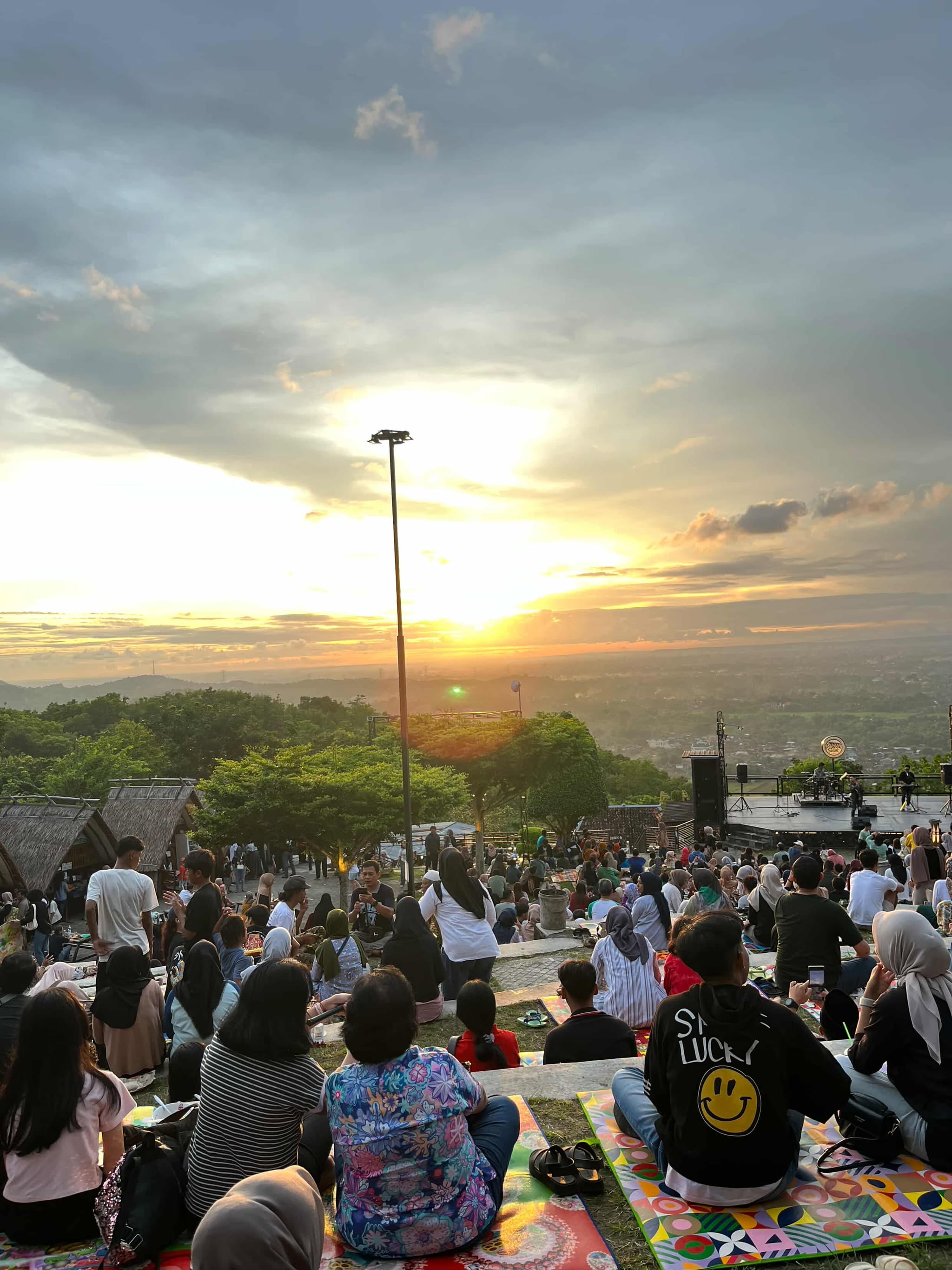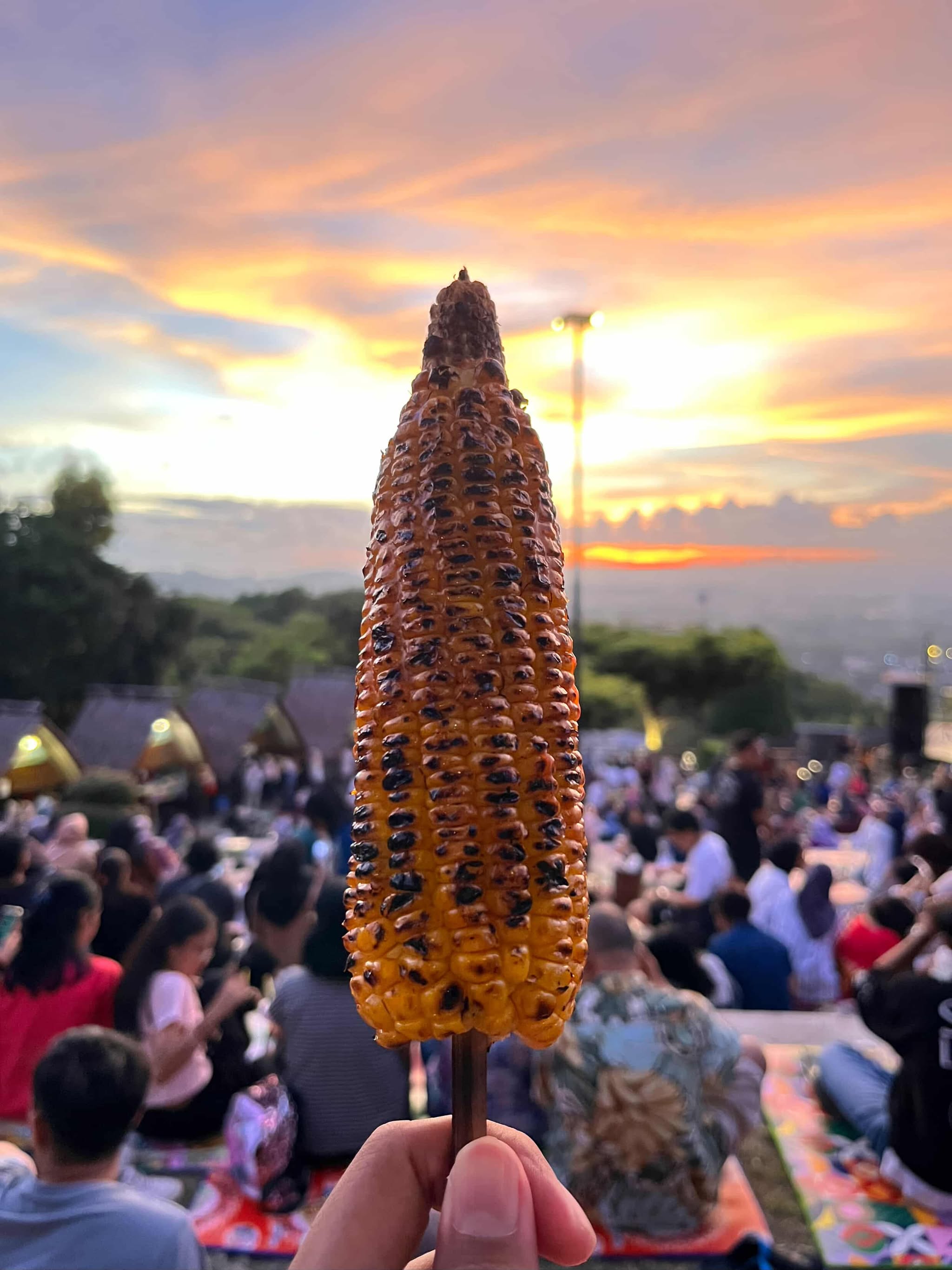 Selain itu, sambil menikmati musik, Kawan Kelana wajib mencicipi kudapan khas seperti jagung bakar, gorengan, hingga wedang ronde. Harga dari kudapan tersebut sangat bersahabat di kantong, khas keramahan Bantul. Terlebih, saat momen matahari benar-benar tenggelam, pemandangan berubah menjadi lautan cahaya lampu Kota Yogyakarta yang berkelap-kelip dari kejauhan. Sebuah pemandangan yang mampu menghadirkan ketenangan luar biasa.